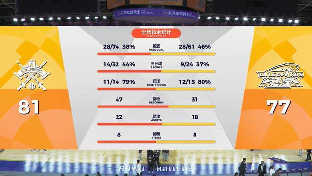 本以为辽宁男篮就这么要交代在这里了,没想到,第四节突然发力,上来轰出10-1,不但抹平了分差,还实现了反超。而这10分,全部都是被称之为水货的布朗。然而,一切还是枉然。在77-77平之后,朱松玮的三分球,直接浇灭了辽宁队翻盘的机会。最终,北控男篮主场以81-77爆冷击败辽宁男篮,张庆鹏成功完成复仇的同时,也终结了尴尬的4连败。